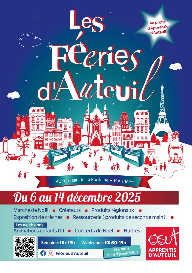 Concerts, brocante, ateliers créatifs, exposition de crèches, manège à l’ancienne, cadeaux artisanaux, spécialités gourmandes, sapins Nordmann vendus sur place par les anciens d’Apprentis d’Auteuil ; chaque achat contribue à financer des projets éducatifs portés par la fondation. Un bel esprit de Noël à partager en famille !